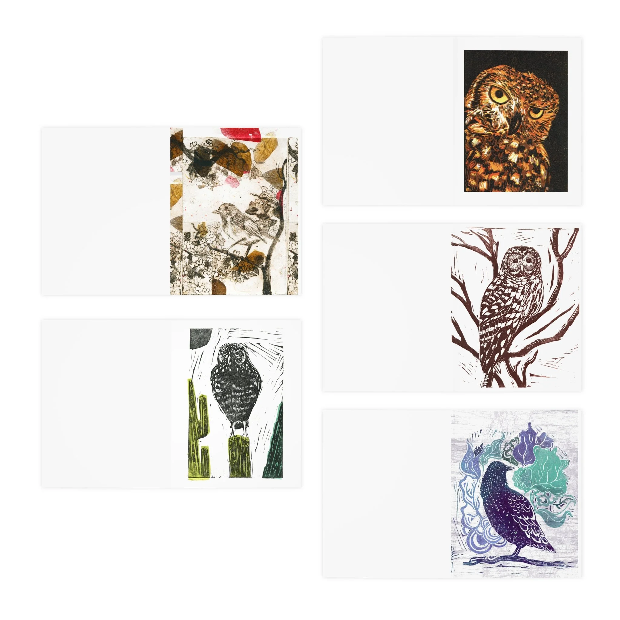Illustrative Linocut Birds Greeting Cards (5-Pack)